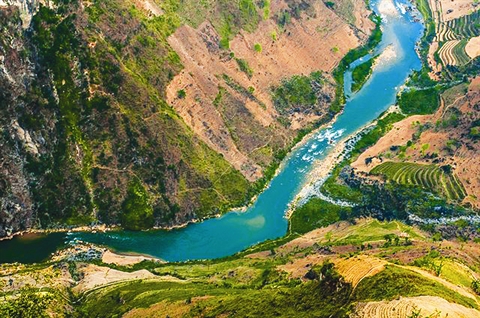 Les villages de Giàng Chu Phin culminent à 1.200 m – 1.300 m, entre le flanc de la montagne et la rivière Nho Quê. Giàng Chu Phin et Xin Cai sont deux communes situées le long de cette rivière. Un spectacle grandiose.