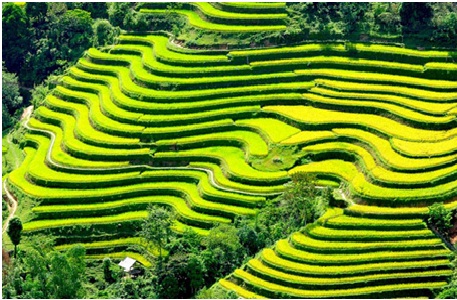 Vues sous n’importe quel angle, les rizières en terrasse sont un véritable spectacle pour les yeux. Pour les touristes et les photographes, le mois d’octobre est le moment idéal pour contempler ces merveilles. Le mois d’octobre, c’est la saison de la récolte principale. Entre les champs dorés prêts à être récoltés, s’entremêlent des champs où une partie du riz reste encore verte.
