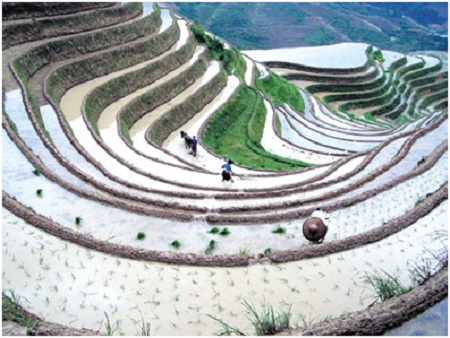 Les rizières en terrasse, ou plus exactement « rizières en gradins », sont l’une de ces géniales adaptations. Gradins parce que chaque rizière se décline en plusieurs niveaux, chaque niveau étant un petit champ. Plus il y a de niveaux, plus le propriétaire force l’admiration pour sa performance agricole. Il choisit des flancs de colline ou de montagne nantis de terres fertiles pour en faire de petits champs plus ou moins plats, qui se succèdent sur des niveaux différents. Giang A Pua appartient à l’ethnie H’Mong : « C’est le défrichage qui est l’étape la plus fatigante. Il faut choisir des flancs ni trop inclinés ni trop caillouteux. Tant mieux s’il y a des herbes épaisses ou de grands arbres.»
