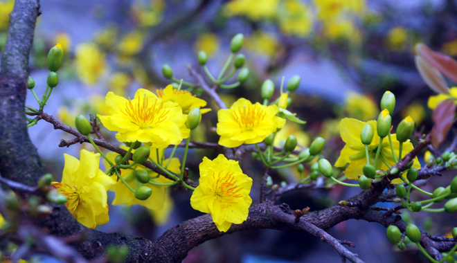 Adulée pour de nombreuses raisons, la fleur d’abricotier (Ochna integerrima) est l’espèce la plus plébiscitée par les habitants du Sud du pays. Cette fleur de couleur jaune et brillante à plusieurs pétales symbolise la chance, le bonheur et la prospérité pour tous les foyers. Sa couleur apporte encore, comme le croient les habitants, la sérénité aux foyers. D’autre part, cette fleur ne s’épanouit qu’au printemps dans un doux climat. Elle est de fait le symbole de la paix pour tout le monde. La fleur d’abricotier incarne également la longévité puisque cet arbuste peut vivre des dizaines, voire des centaines d’années. Il possède un tronc étonnant et très flexible assez proche des bonsaïs. C’est pour ces raisons qu’après le Têt, les habitants conservent avec précaution cet arbuste pendant très longtemps.