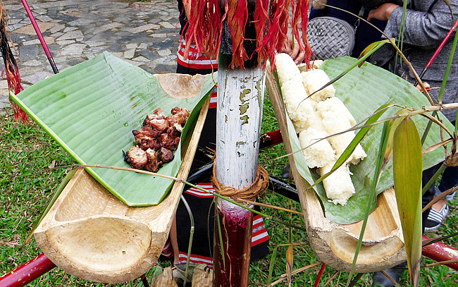 Avant la récolte du riz, les chefs de familles demandent au Ciel et au «Génie du riz» la permission d’inviter «l’âme du riz» chez eux et prient pour leur santé et leur abondance. Le riz est ensuite cueilli par tous les membres de la famille. Seul un panier de riz est apporté chez eux pour la cérémonie de culte. Le reste est stocké près des rizières.