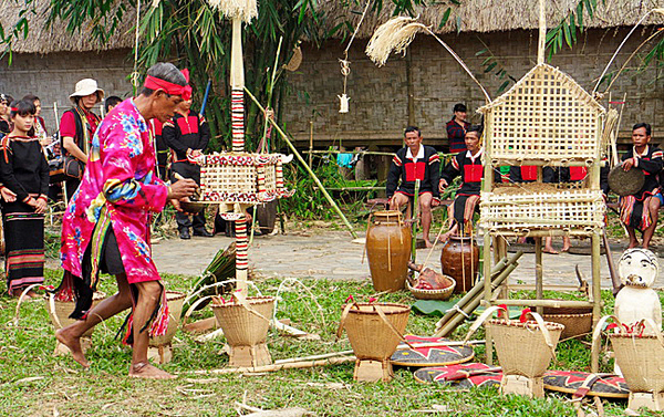 Les objets de culte se composent d’un Puk (Sang Yang), une modélisation d’entrepôts de riz de deux étages, dédié au culte du Dieu et de la Déesse (Ay Diê va Aduôn Diê) et symbolisant l’abondance.
