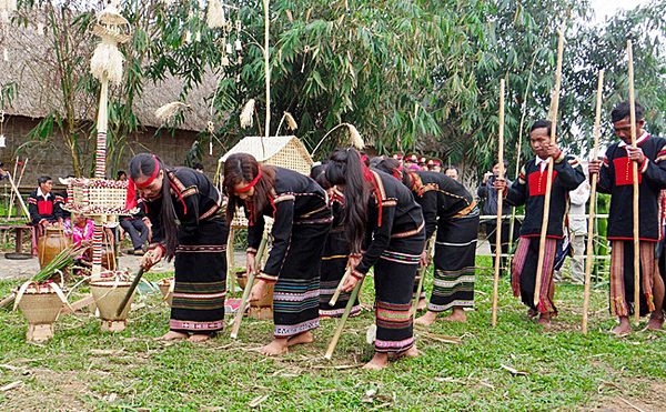 La cérémonie d’invocation de la pluie et des bonnes récoltes est l’un des rites les plus importants de l’ethnie Ê dê. Organisée au début de la saison des pluies, elle est destinée à marquer l’entrée dans une nouvelle période de culture et de chasse, en invoquant un temps clément et la prospérité. Les préparatifs et le déroulement du culte sont réglés comme du papier à musique.