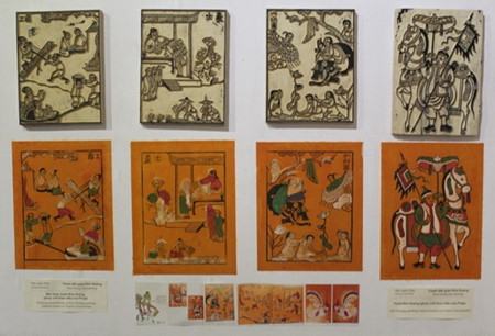 Au début du 20ème siècle, les artisans du village achetaient leur papier rouge dans la rue Hang Ma, une rue spécialisée dans la fabrication et la commercialisation des objets votifs dans l’ancien quartier de Hanoï. Ils trempaient le recto de leur planche, y appliquaient ce papier rouge, le massaient avec une courge éponge séchée de manière à faire ressortir au mieux les images gravées, avant de faire sécher le tout au soleil. Une fois le papier bien sec, l’artisan ajoutait au dessin imprimé des couleurs et des traits supplémentaires, en utilisant un pinceau tressé de paille de riz gluant. Nguyen Thi Thu Hoa, une collectionneuse :