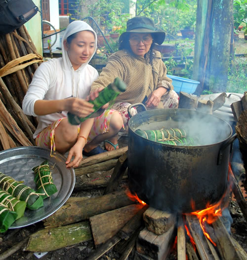 Dans le Sud, le bánh tét ne saurait être absent parmi les plats du Têt (Nouvel An lunaire). Il fait partie des us et coutumes de cette région depuis des centaines d’années.