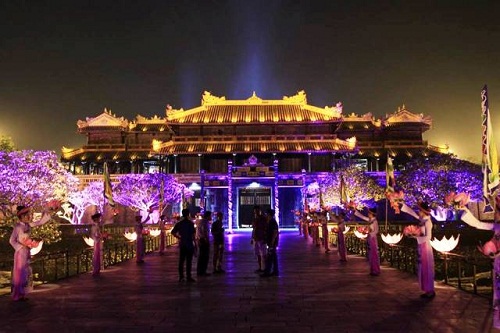 Les visiteurs pourront à cette occasion, d’admirer les rites royaux en lumière comme la cérémonie de relève de la garde à la Porte du Midi (Ngo Môn), la représentation de «Tiêu nhac» (petite musique du «Nha nhac», musique de cour vietnamienne) dans la cour du Palais de Thai Hoà, dans la cité pourpre interdite (Tu Câm Thành) et au Jardin Co Ha, le concert de «Dai nhac» (grande musique du «Nha nhac» dans la cour du temple Thê (ou temple des générations), mais aussi de chant de Huê au Palais de Truong Sanh…